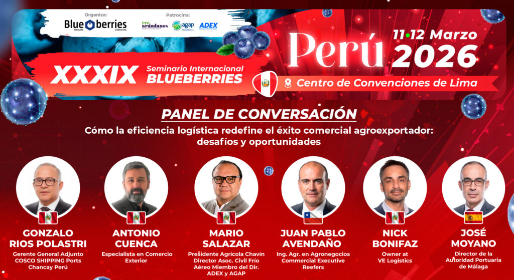 La competitividad del arándano ya no se define solo por rendimiento y calidad en campo. Cada vez con más fuerza, depende también de la logística: tiempos de tránsito, disponibilidad de espacios, continuidad de la cadena de frío y capacidad de coordinación entre actores. En ese contexto, el XXXIX Seminario Internacional Blueberries Lima 2026 incluirá este panel de conversación, orientado a vincular decisiones operativas con resultados comerciales concretos.