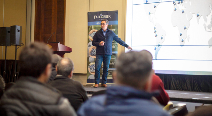 Finalmente, Francisco Lobo, en una presentación muy completa mostró el trabajo robusto que hay detrás de la generación de esta nueva genética que ya está dando sus frutos luego de 25 años de trabajo del equipo de Investigación y Desarrollo de Fall Creek® en el Mundo y del equipo de investigación de Oregon (Casa Matriz). Adicionalmente hizo un repaso de las selecciones que están en camino a entrar a las plataformas comerciales, poniendo énfasis en ‘FC15-173’; ‘FC16-003’, y la impresionantemente firme ‘FC11-164’.