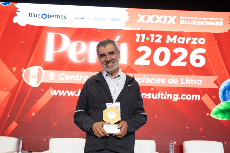 Durante el XXXIX Seminario Internacional Blueberries Lima 2026, el investigador y consultor internacional analizó los factores que explican la pérdida de firmeza del arándano entre campo y destino. Su participación coincidió además con un homenaje a su trayectoria científica y a su aporte al desarrollo del cultivo del arándano.