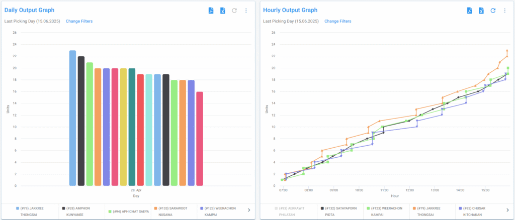 Los resultados hablan por sí solos. En promedio, las explotaciones agrícolas que utilizan PickApp reportan una mejora del 10% al 20% en la productividad de sus trabajadores, junto con reducciones significativas en los costos agrícolas generales. Al mismo tiempo, observan mejoras en la calidad del producto, gracias a la trazabilidad completa en el proceso de recolección y clasificación. Para los productores que trabajan en mercados de exportación altamente competitivos, este impacto medible es un punto de inflexión.