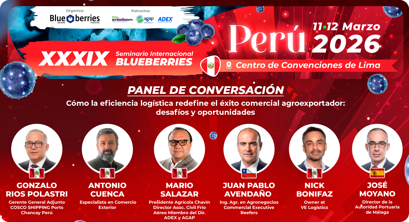 - Más información sobre el panel: Puertos, comercio exterior y logística se reúnen en un panel clave para el arándano en Seminario Internacional Lima 2026