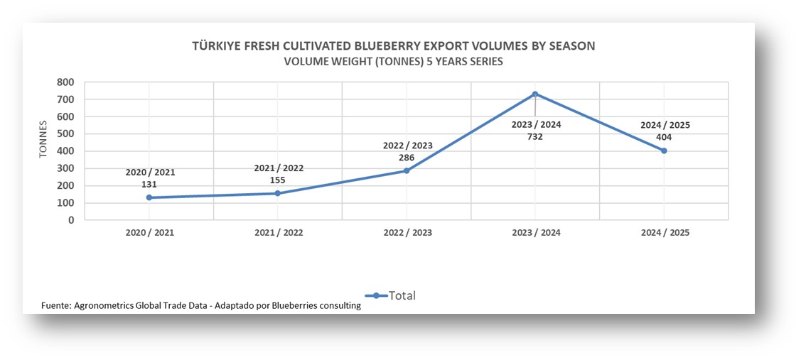 En menos de cinco años, Turquía ha pasado de ser un jugador incipiente a consolidarse como un mercado emergente en la industria global del arándano. Con un crecimiento explosivo de sus exportaciones, la preferencia de destinos europeos estratégicos y una producción que aprovecha la diversidad de sus microclimas, el país se abre camino como un proveedor cada vez más competitivo.